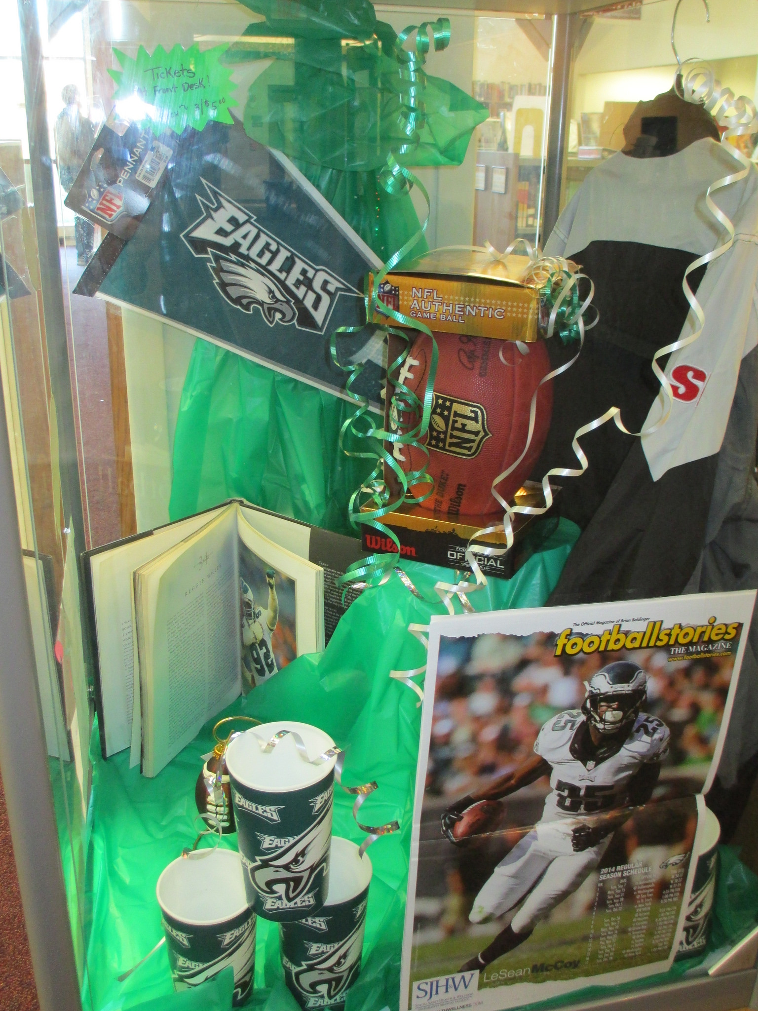 The prize is a football signed by LeSean McCoy and a wide variety of other Eagles items!