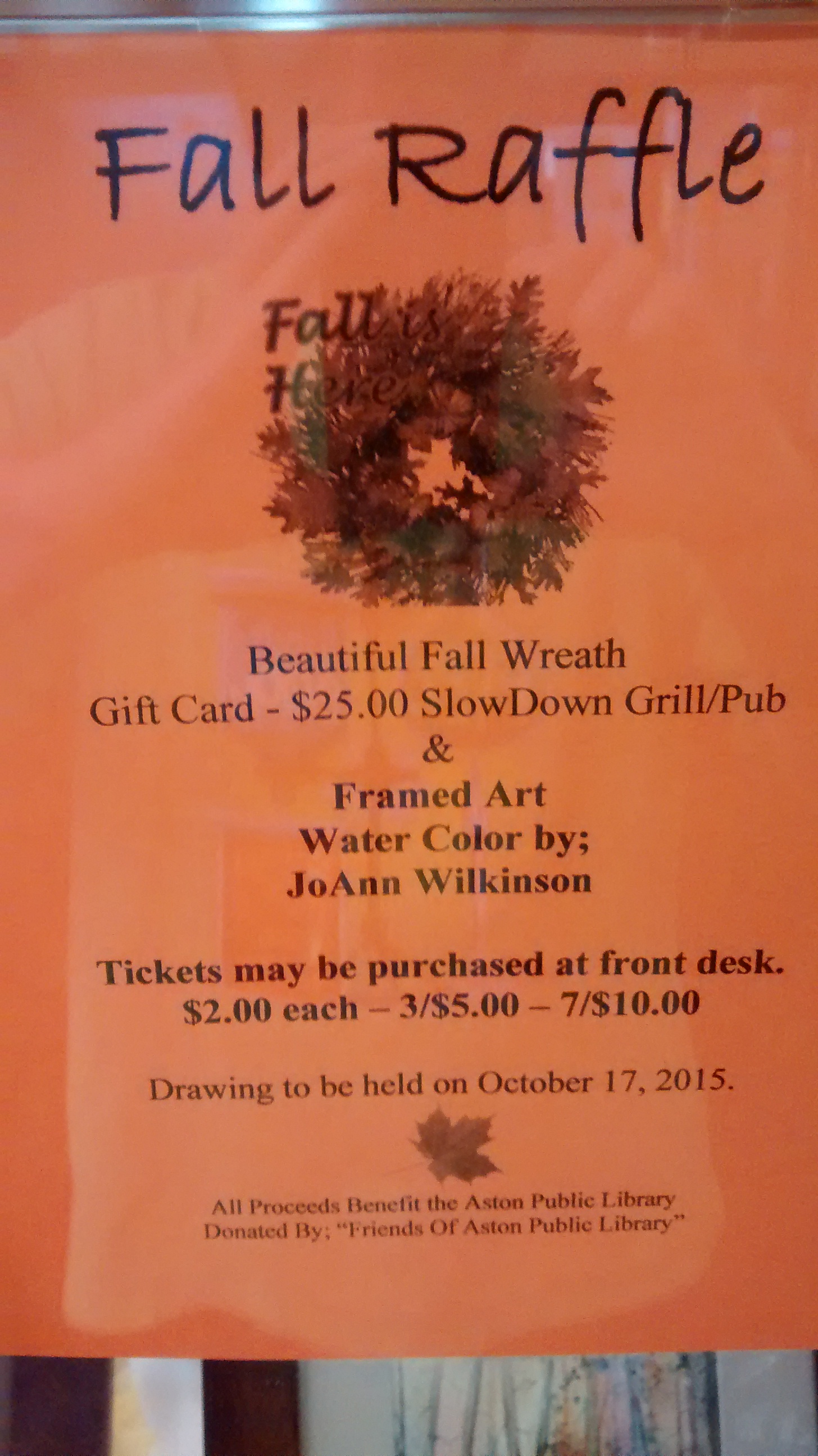 Proceeds of the raffle go to the Friends of the Library. You can get one ticket for $2, three for $5, or seven for $10!