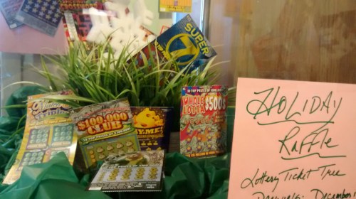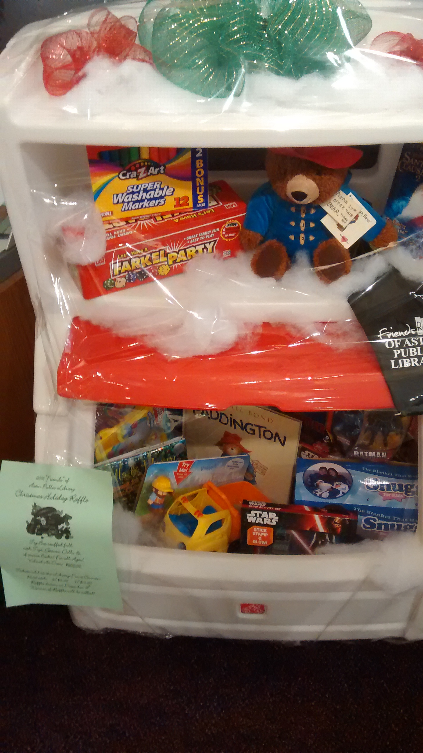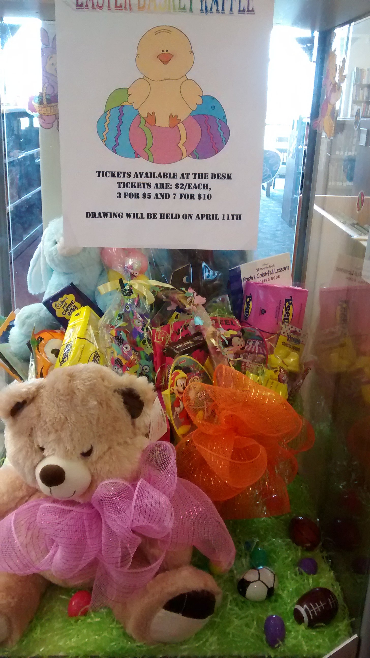 Proceeds of the raffle go to the Friends of the Library. You can get one ticket for $2, three for $5, or seven for $10!